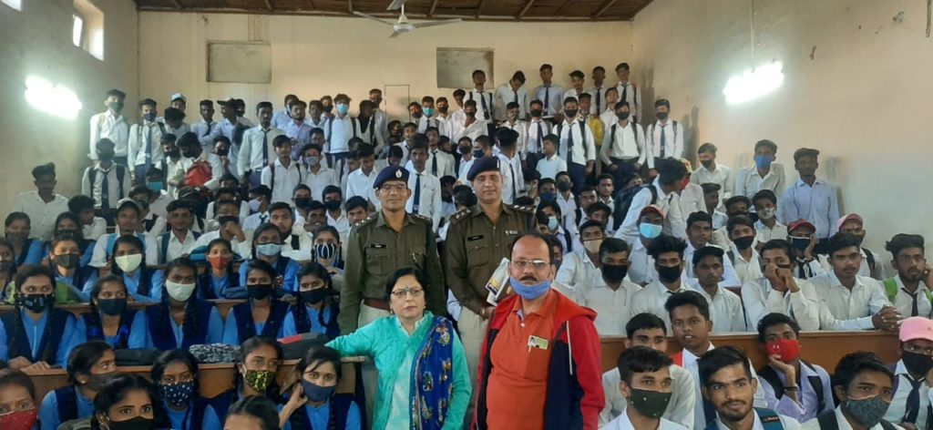 श्रीमान पुलिस अधीक्षक महोदय राजनांदगांव श्री संतोष सिंह के निर्देशानुसार अतिरिक्त पुलिस अधीक्षक महोदय श्री संजय महादेवा के मार्गदर्शन में पुलिस अनुविभागीय अधिकारी श्री दिनेश सिन्हा एवम थाना प्रभारी खैरागढ़ नीलेश पाण्डेय के द्वारा दिनांक 11.2 .2022 को शासकीय उच्चतर माध्यमिक विद्यालय खैरागढ़  में सामुदायिक पुलिसिंग व नशा उन्मूलन कार्यक्रम *निजात* के अंतर्गत स्कूली बच्चों  को नशा उन्मूलन जागरूकता के  तहत गांजा/ ड्रग्स /सिलोशन एवं सिरिंज से होने वाले दुष्परिणामों से जागृत किया गया ऑनलाइन  साइबर धोखाधड़ी से बचने के उपाय, पास्को एक्ट के बारे में विस्तार बताये गए । तथा बच्चों को ट्रेफ़िक नियमों के बारे में बताकर नियमों का पालन करने की समझाइश भी दी गई।