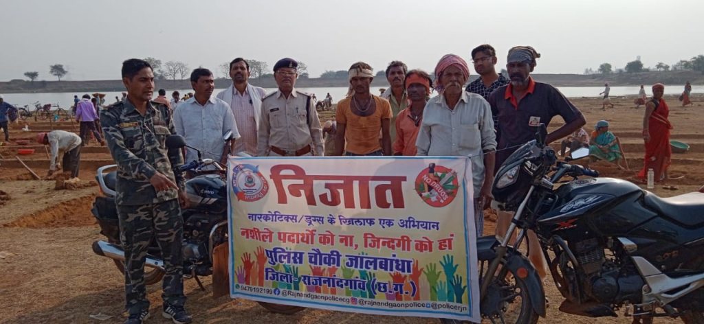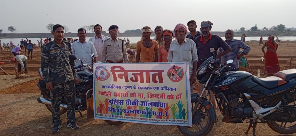 विवरण इस प्रकार है की श्रीमान पुलिस अधीक्षक महोदय श्री संतोष सिंह भारतीय पुलिस सेवा के निर्देशन और अतिरिक्त पुलिस अधीक्षक श्री संजय महादेवा और पुलिस अनुविभागीय अधिकारी खैरागढ़ श्री दिनेश सिन्हा के मार्गदर्शन मैं चौकी प्रभारी जालबांधा उपनिरीक्षक पवन पटवा व चौकी स्टॉप के द्वारा कम्युनिटी पुलिसिंग अंतर्गत ग्राम जालबांधा के ग्रामीणों की उपस्थिति में नशा मुक्ति हेतु निजात अभियान के संबंध में विस्तार से जानकारी देते हुए नशीली पदार्थ गांजा सेरेंज नशीली टेबलेट सिरप उपयोग करने के लिए जागरूक किया गया वह कोई भी नशीली पदार्थ बिक्री करने वाले व्यक्ति की जानकारी मिलती है तो पुलिस को सहयोग करने निवेदन करते हुए लोगों को समझा इस दिया गया और साथ ही साइबर क्राइम चिटफंड एटीएम कार्ड की जान कारी देकर विधिक जानकारी के बारे में विस्तार पूर्वक बताते हुए समझाया गया अभियान की जानकारी देकर पुलिस का सहयोग करने आ गया उपस्थित ग्रामीणों द्वारा पुलिस विभाग द्वारा चलाए जा रहे अभियान का सराहना किया गया