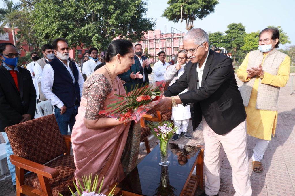 तत्पश्चात कुलसचिव प्रो. आईडी तिवारी, शिक्षक संघ की ओर से प्रो. नीता गहरवार, संगतकार संघ की ओर से पृथ्वीराज कुमार, कर्मचारी संघ की ओर से प्रखर शरण सिंह, विद्यार्थी प्रतिनिधि भक्ति बिसेन और अजय सोनी ने कुलपति महोदया का पुष्पगुच्छ से स्वागत किया। इस अवसर पर कुलपति महोदया ने अपने उद्बोधन में संविधान निर्मात्री समिति के समस्त सदस्यों के प्रति आभार व्यक्त करते हुए सभी को भारतवर्ष के गणतंत्र की 73 वीं बधाई और शुभकामनाएं व्यक्त की। उन्होंने इंदिरा कला विश्वविद्यालय के उन विभूतियों का भी स्मरण किया, जिनकी बदौलत यह विश्वविद्यालय स्थापना काल से लेकर आज पर्यन्त अपनी विशिष्टता के लिए प्रतिष्ठित है। उन्होंने कहा कि यह विश्वविद्यालय सांस्कृतिक विरासत का न केवल संग्रहण और सरंक्षण कर रहा है, बल्कि पीढ़ी दर पीढ़ी उसका हस्तांतरण भी कर रहा है।