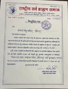 ब्राह्मण समाज को राष्ट्रीय स्तर पर एकजुटता, सशक्तिकरण और प्रतिभाओं को आगे लाने के उद्देश्य से निरंतर कार्यरत राष्ट्रीय एवं सर्व ब्राह्मण समाज द्वारा एक महत्वपूर्ण निर्णय लिया गया है। समाज के राष्ट्रीय महासचिव श्री शशिकांत तिवारी एवं प्रदेश राष्ट्रीय कार्यकारिणी की अनुशंसा पर आपकी निरंतर सक्रियता, समर्पण और समाजहित के प्रति अटूट भावना को देखते हुए श्रीमती अंजू पांडे को राष्ट्रीय सर्व ब्राह्मण समाज महिला मंच, खैरागढ़ जिला अध्यक्ष के पद पर मनोनीत किया गया है।